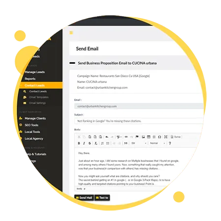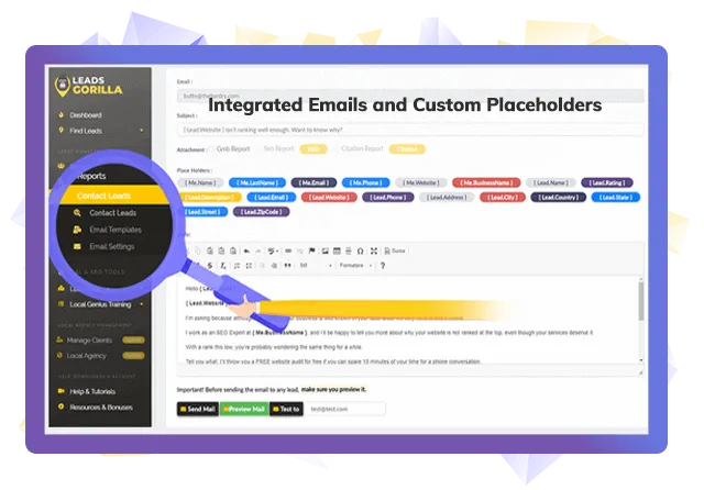 LeadsGorilla lets you contact any lead that you find. Optimization Reports are attached automatically.