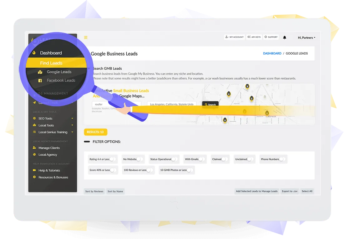 Find local leads from Google & Facebook with dozens of local stats so that you can choose the best ones that need optimization.