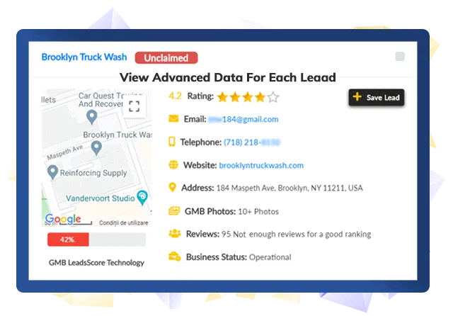 View More Advanced-Data About Each Lead - See crucial data about each lead no other lead finder can show including how optimized their FB or GMB page is, if they are optimizing for video marketing, & more